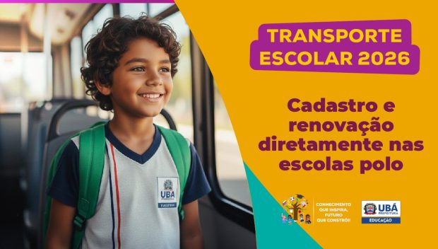 A Prefeitura de Ubá, por meio da Secretaria Municipal de Educação, informa que tem início nesta segunda-feira (12) o período de cadastro e renovação do Transporte Escolar para o ano letivo de 2026. O atendimento segue até o dia 3 de fevereiro e será realizado diretamente nas escolas polo, conforme cronograma organizado por regiões.