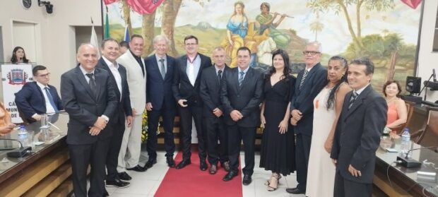 Os vereadores e o agraciado com a Comenda Ary Barroso, Senhor José Evandro Pinto.